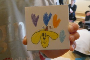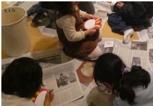 だるまには表情を、ブンブンごまにはデザインを自由に描いてもらいました。